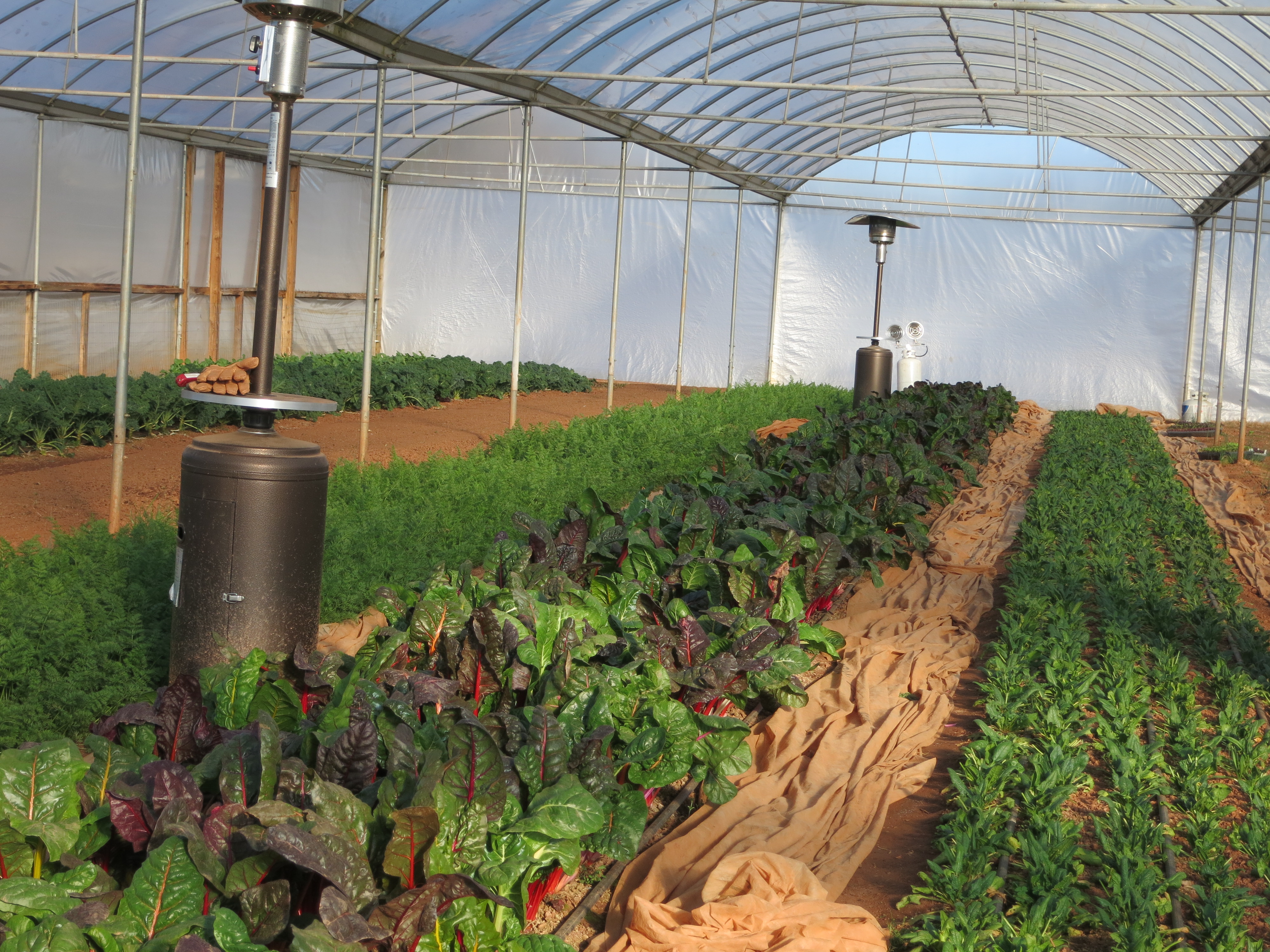 When I visited Guilford College farm in February, Korey and the students had some beautiful chard in the high tunnel as well as some seedlings in the warmer greenhouse they use for starting plants.
