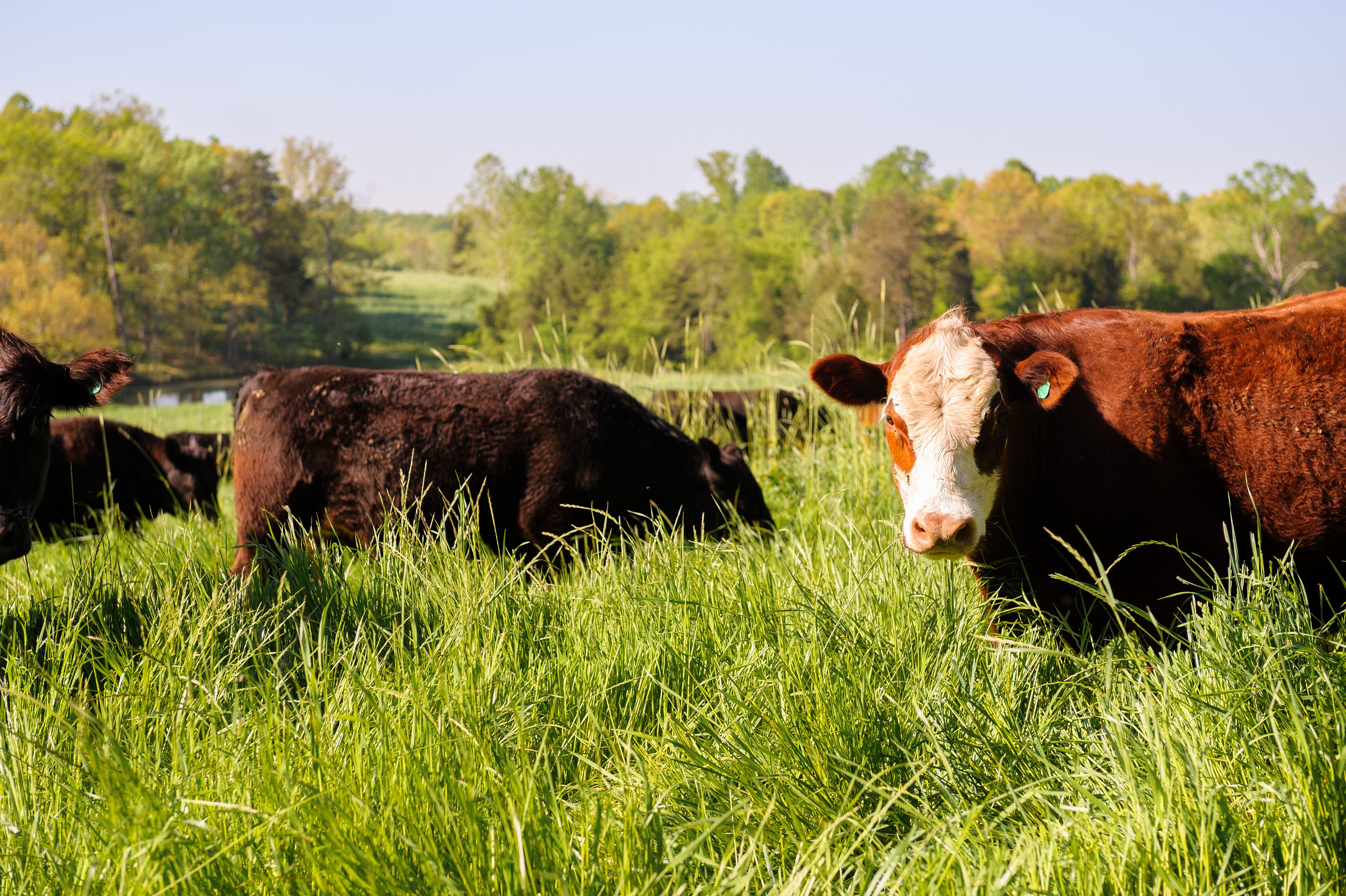 About 600 chickens, soon to be joined by 500 more, share the hundreds of acres of pastures with the cattle. Tony Hearst has a ready laugh and easy demeanor that keeps these girls clucking happily near their chicken tractors. The tractors are coops on wheels that can move to fresh fields each day so the chickens can eat insects and-ahem-amend the soil. (Chicken droppings make great fertilizer in moderate quantities.)