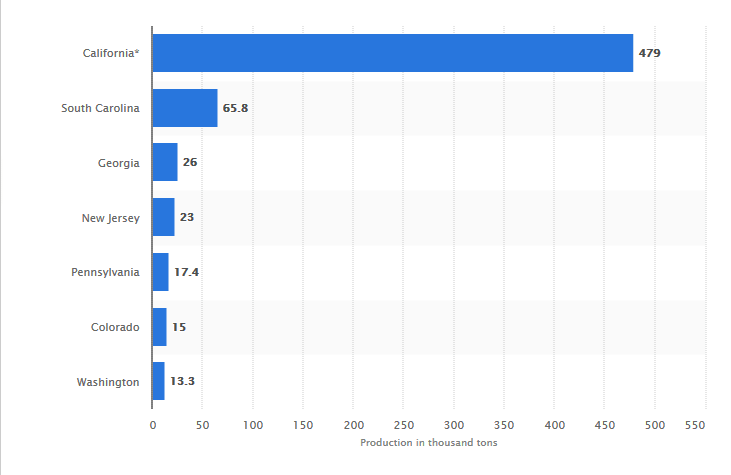 Screenshot_2019-07-10 Leading peach producing U S states 2018 Statista Published July 10, 2019 at 731 × 475 in Peaches Next → 2018 US Peach Production by State (1,000 US short tons)
